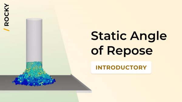This tutorial evaluates particle setup parameters by simulating a Static Angle of Repose (SAOR) test. The objective is to set up and run a SAOR test case using a cylinder and a tray, to calculate the resulting SAOR using two methods: manually using Cross Plots and automatically using a Python script. You will also study how the SAOR behaves with different particle-to-particle static and dynamic friction values by running multiple cases in the Rocky Scheduler.